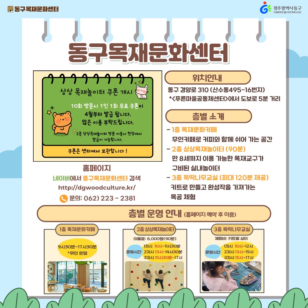 광주 최초 목재체험 문화공간 「동구목재문화센터」이용 안내